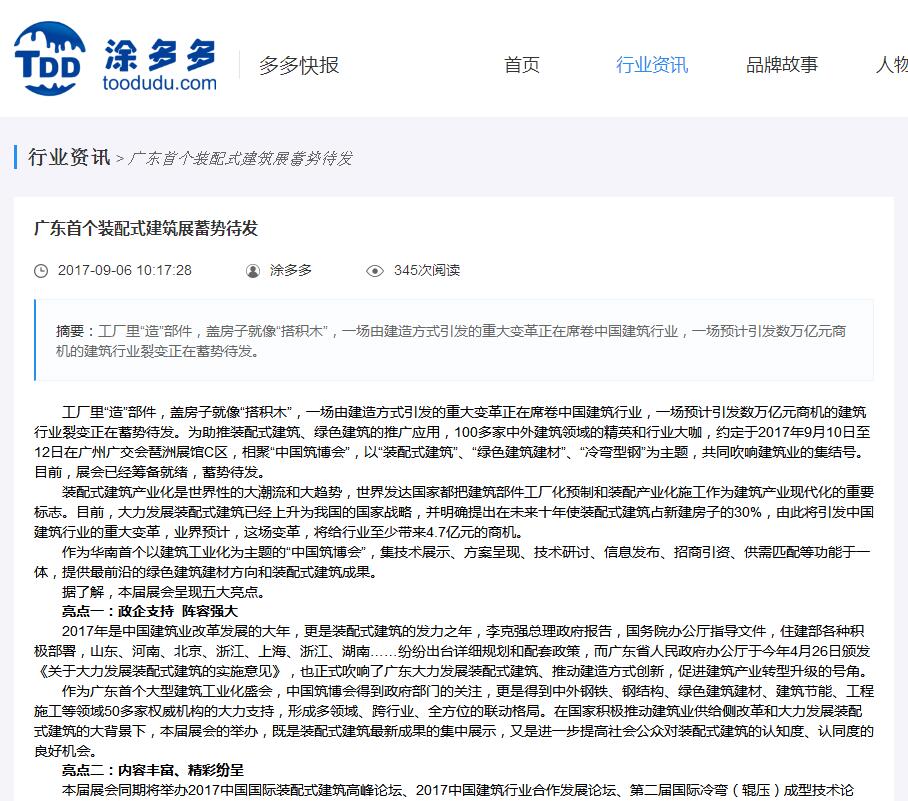 中國(guó)鋼結(jié)構(gòu)資訊網(wǎng)發(fā)布有關(guān)2017中國(guó)筑博會(huì)·廣州開幕式的報(bào)道 (2017-10-30)