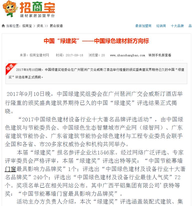 廣告買賣網(wǎng)發(fā)布有關(guān)2017中國綠色建材設(shè)備行業(yè)十大著名品牌獎的報(bào)道 (2017-10-30)