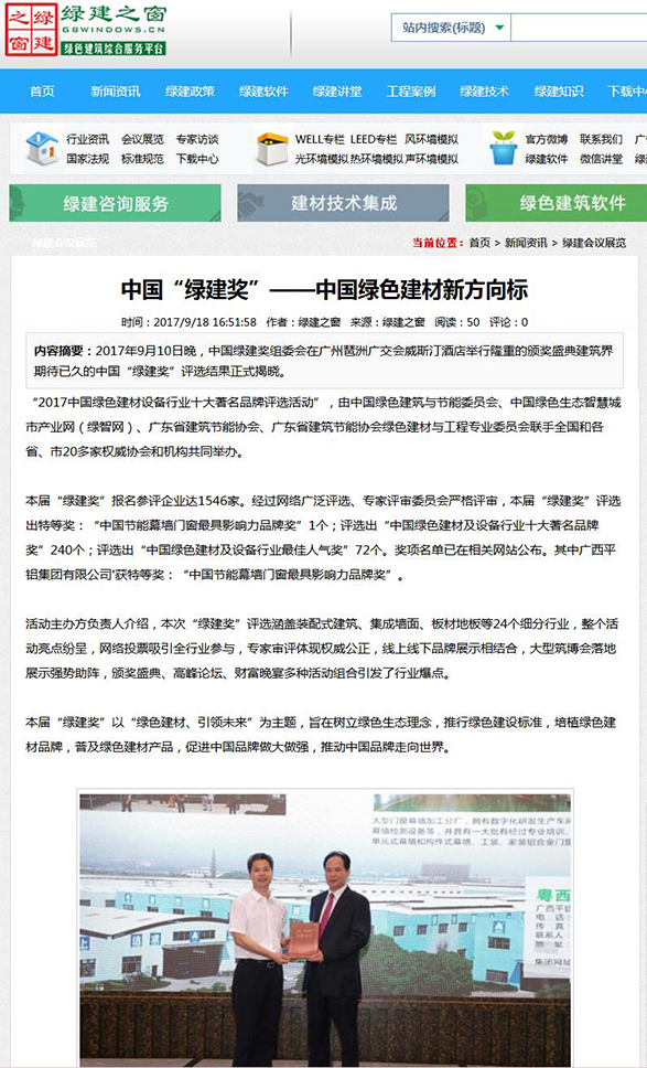 鋁博士網(wǎng)發(fā)布有關(guān)2017中國(guó)綠色建材設(shè)備行業(yè)十大著名品牌獎(jiǎng)的報(bào)道 (2017-10-31)