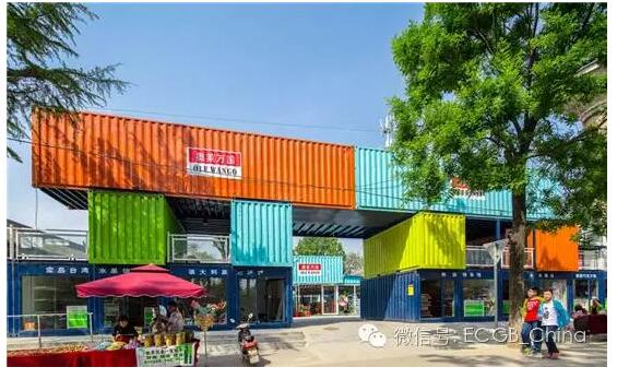 這是一個(gè)蠻有意思的集裝箱商業(yè)街,位于陜西袁家村。設(shè)計(jì)師利用52個(gè)創(chuàng)意集裝箱搭建了一條特色商業(yè)街,內(nèi)有萬國生活館,日韓生活館,東南亞美食等多個(gè)商鋪,吃喝玩樂一應(yīng)俱全。可以看出,這里的集裝箱被涂成橙色、綠色、黃色、藍(lán)色等清新艷麗的色彩,讓整體風(fēng)格更加多元化。